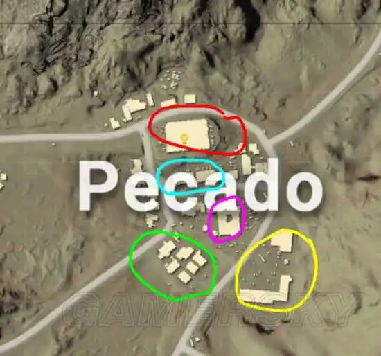 先说说红色点,拳击场。也是pecado物资最丰富的地方,我曾经在里面看到3个三级甲。出来基本能小康。
