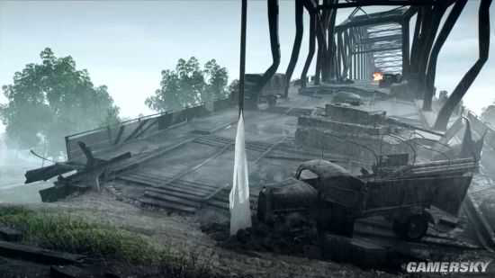 这块位于法国的沼泽地旁耸立着《战地》系列中最巨大的建筑:一座巨大而支离破碎的钢铁桥梁。这里便是钢铁熔炉。