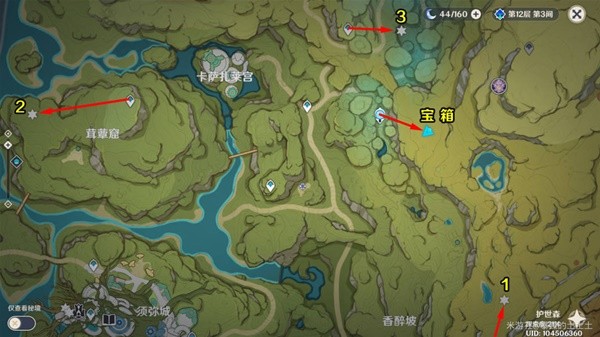 宝箱点:传送到水天丛林左上方的锚点,跳到下一层,激活众叶觉蕊,飞到对面的小屋子。