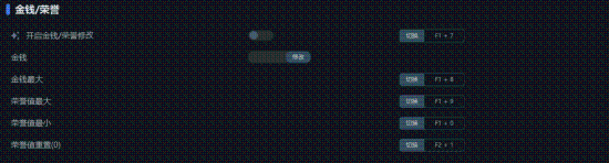 金钱修改后,通过增加/减少金钱刷新。荣誉修改后,通过增加/减少荣誉刷新。