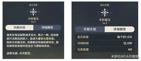 普通攻击时发射两发土元素宝石,并积累一层星璇。