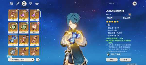 圣遗物方面推荐双水+双宗室可以保证自身方面的元素伤害(偏脱手工具人打法)这套圣遗物可以不用极致追求爆伤,副词条尽量追求充能以至于稳定行秋的充能问题