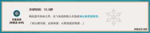 ②.元素战技命中敌人后将施加强冰元素附着(2元素量、12秒),每次施放元素战技均可施加。