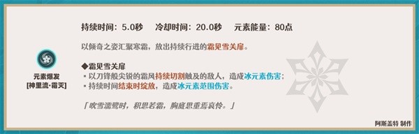 ④.元素爆发具有锁面板机制,根据施放出霜风时的角色面板进行结算。