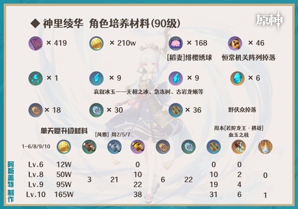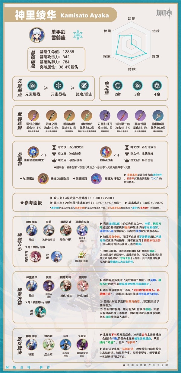 《原神》在3.5版本再次开启了神里绫华的获取卡池,那么这名角色的武器和圣遗该如何选择呢,下面请看“Asgater”带来的《原神》神里绫华一图流培养指南,希望能够帮助大家。