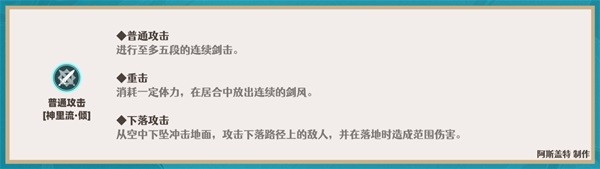 ②.飘逸炫美的剑姿尽展神里大小姐的华贵之身份,第5段攻击会向前造成突进,具有一定的攻击后摇。
