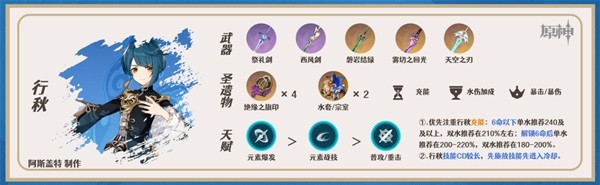 ▶「参考输出手法」:纳西妲E、行秋EQE(祭礼剑)、久岐忍E、绫华冲刺后A接EQ后接AZ输出
