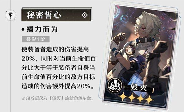 虽然限制了击破特攻的词条需求,但由于光锥在叠影1情况下就已经能提供60%的击破特攻,因此只需要保证角色不带该光锥时有90%击破特攻即可。