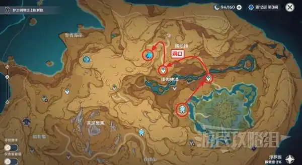 先开启浮罗囿的七天神像(开启方法请参考这篇攻略),然后从浮罗囿的七天神像按照下图所示的路线即可前往秘境。
