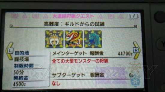 结云村的龙历院挑战状,开场柠檬碎龙和金狮子同场,都打死了出天回,禁足地不能开栅栏所以比上面那个略难一点点,熟练的同学可用烟雾弹,先杀哪只看你喜欢,个人是先杀的雷狼,不熟练的话,强走绕场跑,盯住一只怪时不时上去骚扰几刀,就这个输出速度,10分钟不到,被你打的怪也基本死了,后面剩1只还有再后面的天回。2个软柿子,想怎么捏都行了