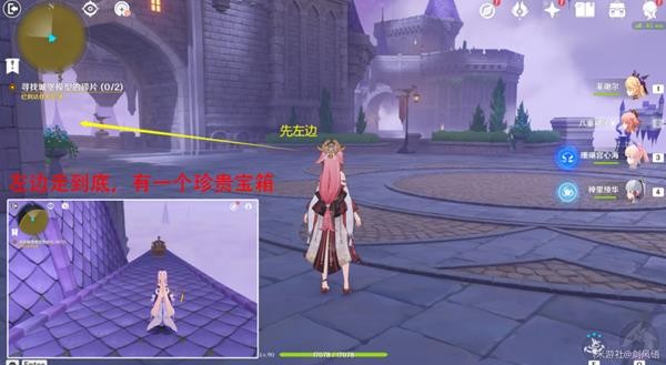 (1)花园中心处,碎片在一左一右拱门后面,先完成左边的碎片。走到尽头拿珍贵的宝箱。