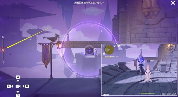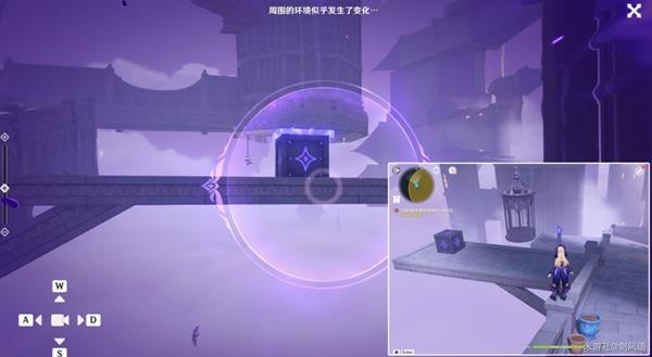 (2)拿到珍贵宝箱后,回来到转角处,操作鸦眼激活成功教程机关,出现桥梁。