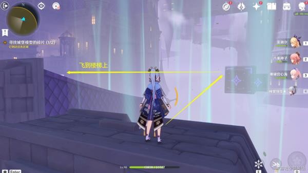 (10)通过中间的风场飞到左边的楼梯上。