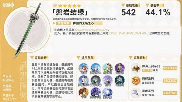 磐岩结绿:这里磐岩结绿也能作为芙宁娜的毕业武器选择。