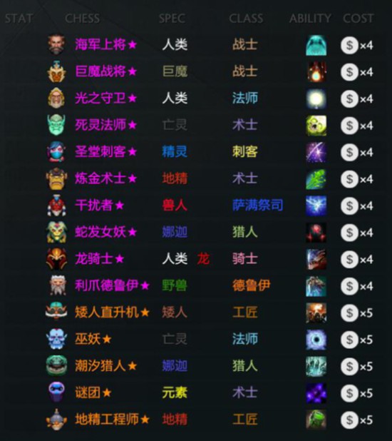法师:三法三术带四骑/三战/三地精。三地精>三战>四骑,三地精法术技能对于三法减魔抗的buff更有利,船长末日的输出也可以的,四骑有点贵,法术也少。9人口成型。后期光法并不理想,两星巫妖是最佳法系输出,电魂攻速最快没影魔可以给电魂物理装备,三星蓝胖可算肉。冰女buff机,后面够三个就卖掉就好了。