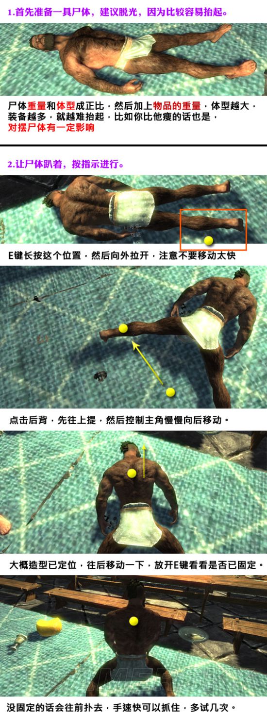 天际里摆尸体是经常的事。至于某些高难度动作,我这里详细说一下。