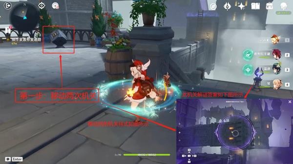 回到一层的机关处旋转机关一次后乘风场上去解谜,步骤如上图所示。
