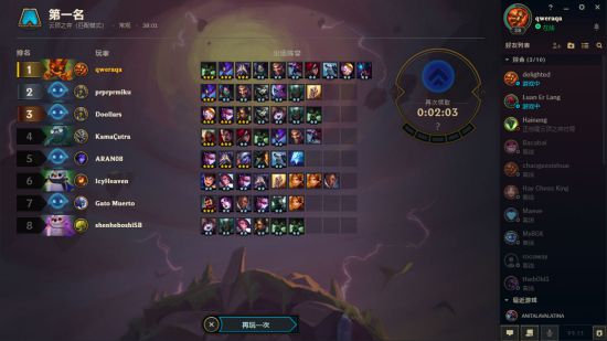 2帝:2帝我这里前期诺手刷得不多,选择卡特加德莱文(依旧op),这两个都是开技能就能扭转战局的英雄,给卡特稍微一点点带蓝的装备,2星卡特就可以完成绝地大翻盘。