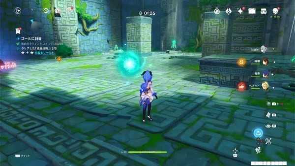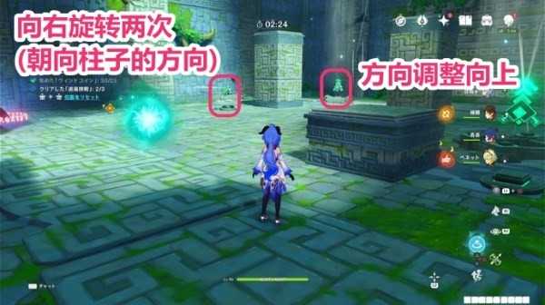 2.沿着柱子的斜坡到达上层拾取风元素粒子开启挑战。
