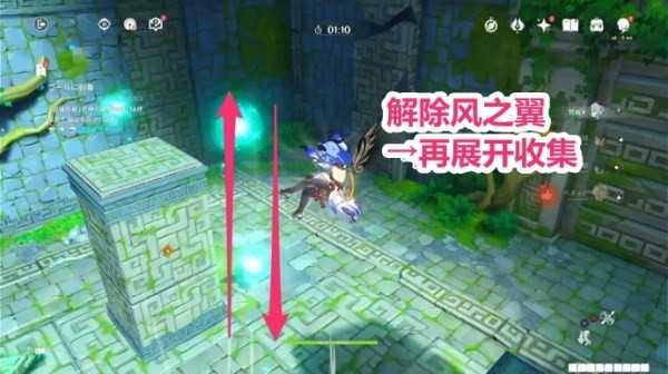 5.途中有一些微粒所在位置高度不一样,由于下方有风场,所以要先收起风之翼收集后再展开风之翼。