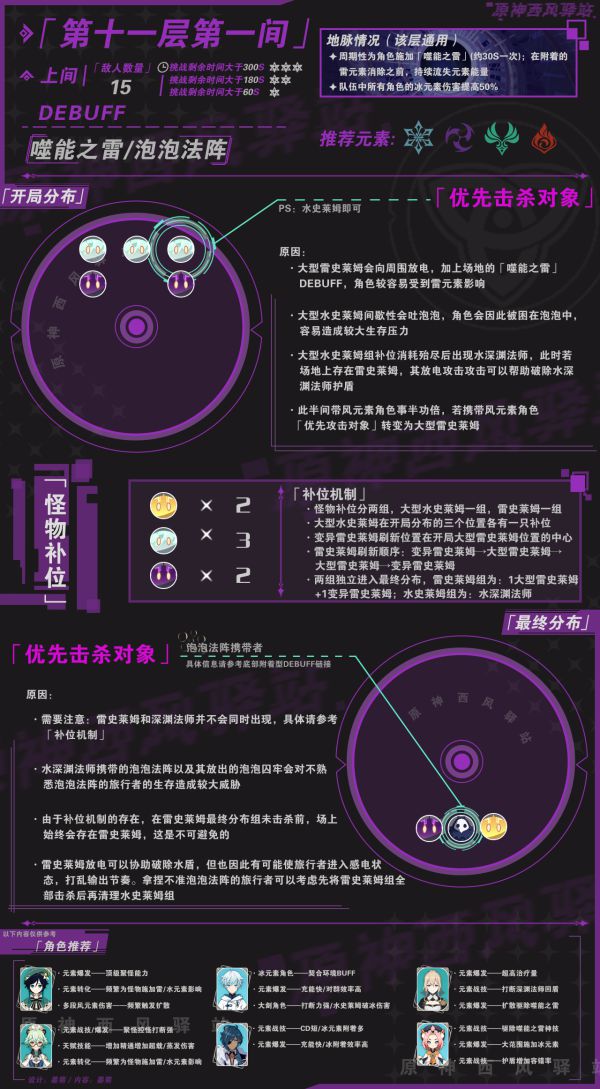 首先是11层的环境BUFF,这点我在每间攻略的右上角会提到它的施加间隔时间(约为30S)。