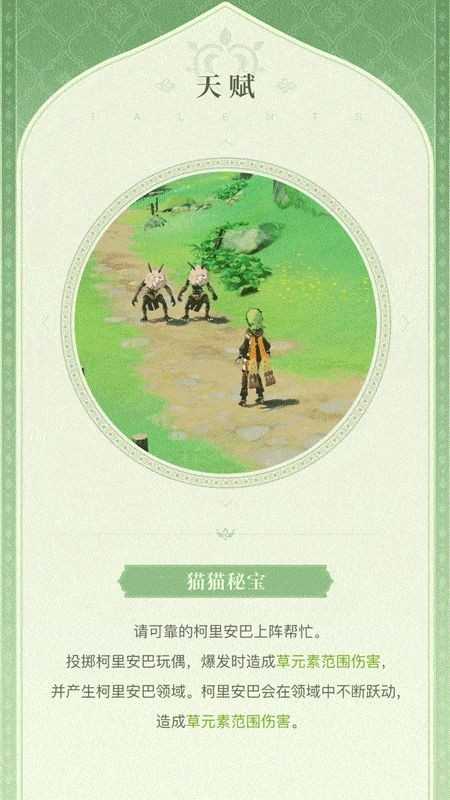 只要队伍中携带了可以和草元素发生反应的队友,这一点对于柯莱来说非常容易触发,而且相当于额外释放了草元素环境,倍率给的比较低,主要也是引导玩家多做一点反应机制。