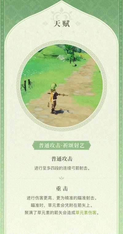 很普通的天赋。不过弓系角色在大世界探索方面可比非弓系角色吃香的多,无论是远程激活元素方碑还是桶,弓系角色都有自己的一席之地。