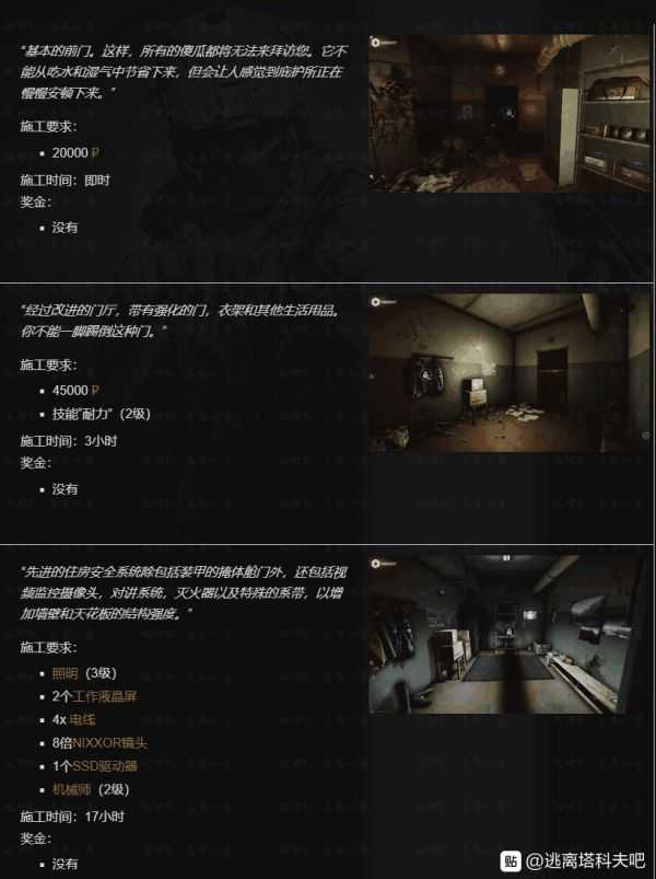 《逃离塔科夫》中玩家可以建造藏身处这一设施,在藏身处中玩家可以恢复角色的状态以及制作一些战斗所需的物品,那么如何升级藏身处呢,下面请看由“志存心悉”带来的《逃离塔科夫》藏身处升级清单及注意事项,希望可以为大家带来帮助。