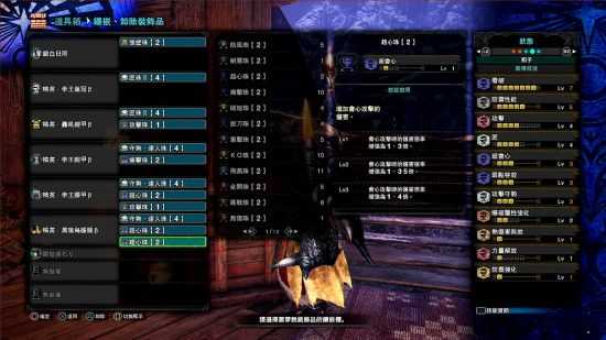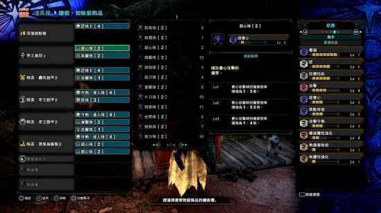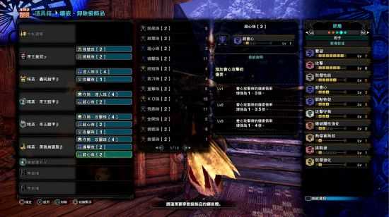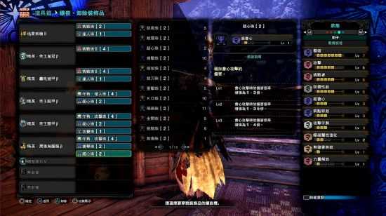 进入冰原用本体最强枪套,金惨爪枪+腾龙四件套进行开荒,打到迅龙更换搔鸟枪(搔鸟枪最后一级材料需要讯龙材料),如果长枪水平比较高,直接可以用这一套打到M级炎王龙之后再更换M级炎王龙三件套即炎王头手腰+爆鳞龙亚种身+爆锤龙腿+达人护石,打到黑狼鸟后换黑狼鸟腿。这是一个路线。另外一套路线。用腾龙四件套+搔鸟枪打到惨爪龙,爆锤龙以后开刷,做出惨爪三件套+爆锤龙两件套(图9)惨爪三件套自带刚刃研磨,爆锤龙两件套自带的防御强化,随便配上三颗痛击珠+达到击打弱点95暴击根据自有珠子进行调配护石跟技能。又或者如下图所示,攻击护石由于我升级了,本体最高可升级到3级,本体系统送一颗攻击珠,即4级攻击获得5%会心,达到满暴击。