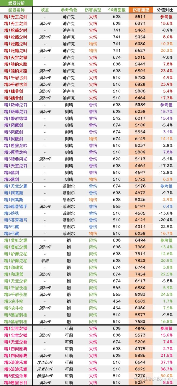 《原神》中武器的基础属性以及特殊技能都有所不同,所以各个武器的输出期望并不一样,想要了解各个武器强度的玩家请看下面“步夜apple”带来的《原神》部分武器伤害期望值对比,希望能够帮助大家。