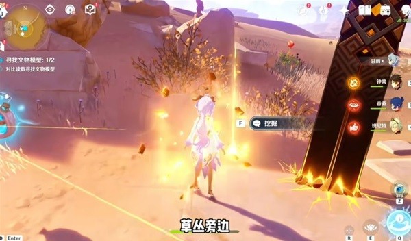 记得在附近放一下道具,就会显示百分比,之后点挖掘就可以了!