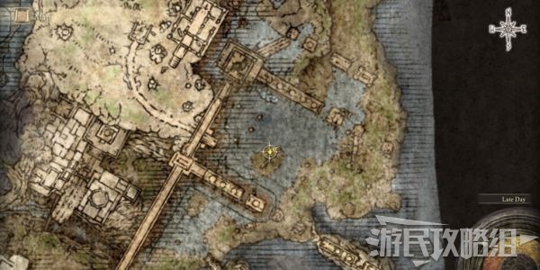 第三个火盆位于东北方向的一座小岛上,同时也在赐福“希芙拉河(岸边)”的北边。靠近小岛时,上面会刷新出一些幽灵战士和弓箭手,骑着马跟他们周旋,然后寻找机会将它们全部击杀即可,期间尽量不要被弓箭手打到。另外不要跑的太远,惊动了其他区域内的敌人就糟了。