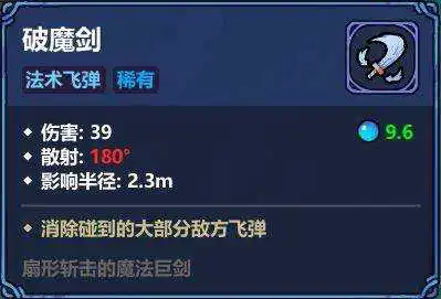 核心法术飞弹就是「破魔剑」(「破魔剑+」),核心法术增强是「范围增强」、「悬停」、「时长强化」。如果能有遗物「放大镜」或法杖「伟业见证者」来扩大法术影响半径就更好了。
