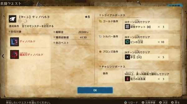 考验奖励的黄金条件为在13回合内完成任务,奖励为探索票【R】×3,个人感觉不如白银条件给的【瓶子王冠×10】香,所以没必要都打黄金条件。