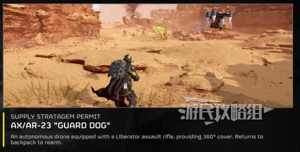 “护卫犬”和“护卫犬”漫游车就像是私人保镖,可以将身后安心交给它,“护卫犬”使用“解放者”突击步枪,“护卫犬”漫游车使用激光步枪,具体的选用可以根据个人喜好或具体环境来决定。这两种武器都能提供360°的范围覆盖,阻止敌人靠近,其中需要注意的是“护卫犬”的突击步枪消耗弹药,“护卫犬”漫游车的激光步枪是过热冷却,在体感方面突击步枪的弹药消耗比较快,而激光步枪的过热冷却期比较短,能够持续射击的时间比较长。
