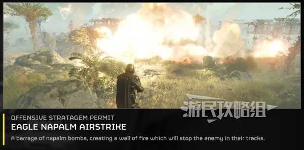 “飞鹰”凝固汽油弹空袭能够造成大量伤害并持续摧毁目标,可以清除整个虫巢,还能牵制敌人行动。5级时即可解锁,使用次数为2次,但冷却时间只有15 秒。不过适用的场景比较少,建议按需考虑解锁。