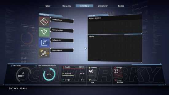 植入物:显示敌人血量,回血技能的选择等很多东西都在这里替换(部分植入物必须在医疗椅替换)。