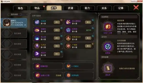 3、功法上可以是1~2外8~7内。顶级配置内功配置是洛神步、云隐术、凌云步、玄阴决、九州决、九霄真经、无极混元功