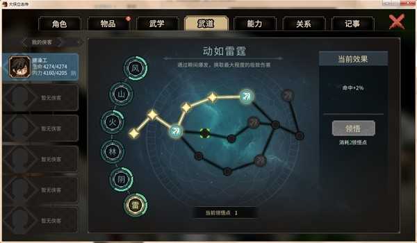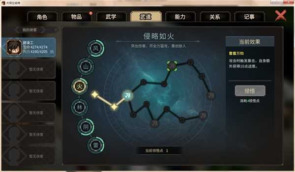 4、武道上风火(点出暴击战意即可图中等级不够没点上)阴雷。