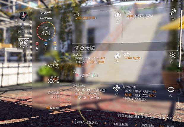 手枪用M1911,主天赋带终结者,击杀后切换武器增加30%暴击率(效果不会显示在面板,并且可以超越60%暴击率限制),第二天赋快板。