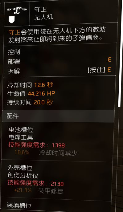 1、偏转无人机不防炸,但可以阻挡由子弹引起的Debuff