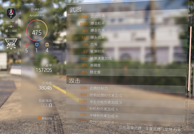 目前我这个属性已经很接近完全体了。另外补充一条Excel表上可能算是失误的地方。昨天出了个单属性暴击率的阿尔拉蒂手套,第一眼看上去很开心。一看数值5%,笑容渐渐消失。不过看到另一个阿尔卑斯手套是被动天赋还是加突击步枪伤害的就赶紧换上了,天赋洗成了8%暴击率。大概接近了表中10%暴击率的理想属性。