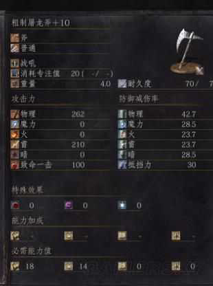 屠龙斧直接强满没商量,超高的自带雷伤。个人觉得是小斧里最好的2把之一,还有一把是dlc的米尔伍德战斧
