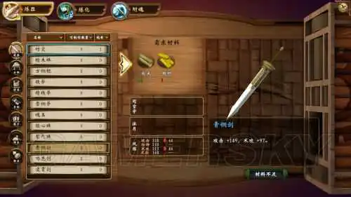 小编这里因为材料不足所以啥玩意儿也合不出来,炼器所需木材、布、丝线可以通过商店购买或者通过怪物掉落获取,而矿石、皮革、玉则只能通过怪物掉落获取,一些珍稀的高阶材料则只有boss战才会掉落。所以想要合出更好的装备你只有不停地刷刷刷了。
