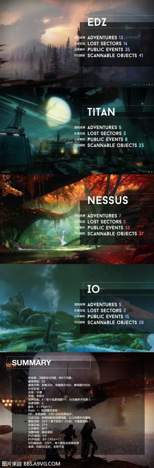 《命运2》中有许多冒险故事和公共事件,并且每个星球还有数量不等的失落区域和可扫描物供玩家探索收集。那么游戏中的四个星球上都有哪些活动呢?今天就为大家分享一篇“everyer”介绍的《命运2》四星球全活动事件一览,一起来了解一下吧。