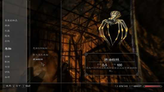这个蜘蛛还挺有用,能控制除死灵以外的所有生物(当然不包括龙)。时间为30秒,等级上限目测很高,因为本人87级遇到的劫掠者领主它都能控制……