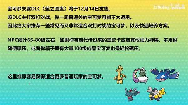 《宝可梦朱紫》蓝之圆盘DLC主打双打对战,那么哪些宝可梦适合通关使用呢?请看下面由“口袋迷ag”带来的《宝可梦朱紫》蓝之圆盘DLC通关宝可梦推荐,一起来看看吧。