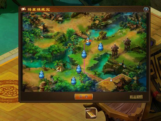 注:等级达到50级以上,玩家可以随机打开桃园村、虎牢关、龙城、乌林渡、将星镇的藏宝图地图。
