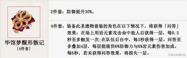毕业圣遗物套装,可以为阿贝多提供54%的防御力以及24%岩元素伤害加成,对于挂后台的阿贝多,叠满4层数后,满效果基本上可以全程覆盖。