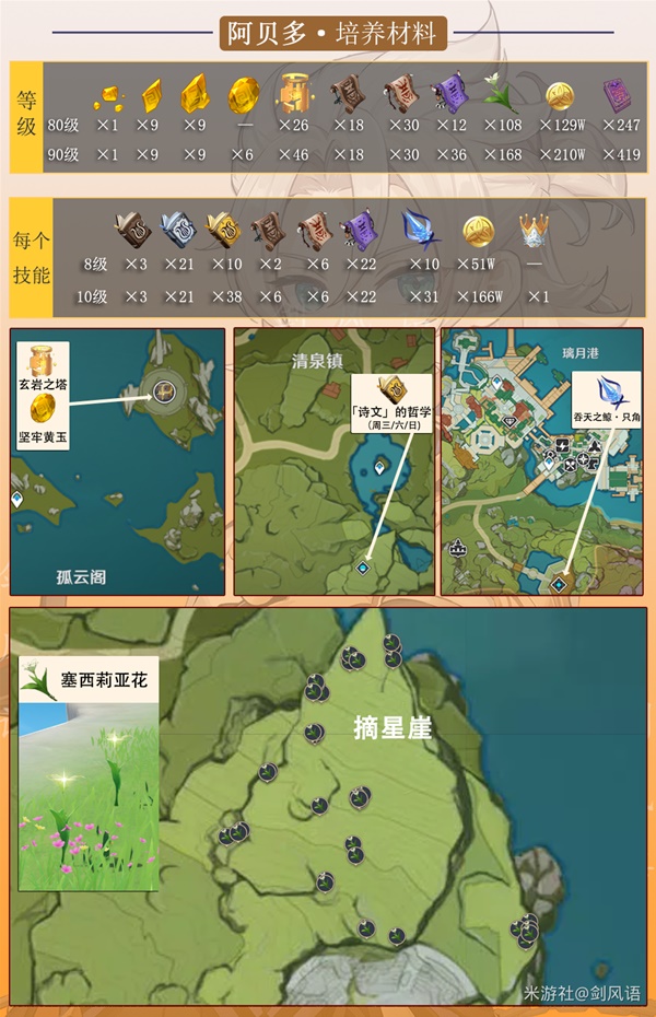 1.阿贝多的「刹那之花」伤害是基于自身的防御力,也就是辅C的阿贝多主要叠防御力即可。
